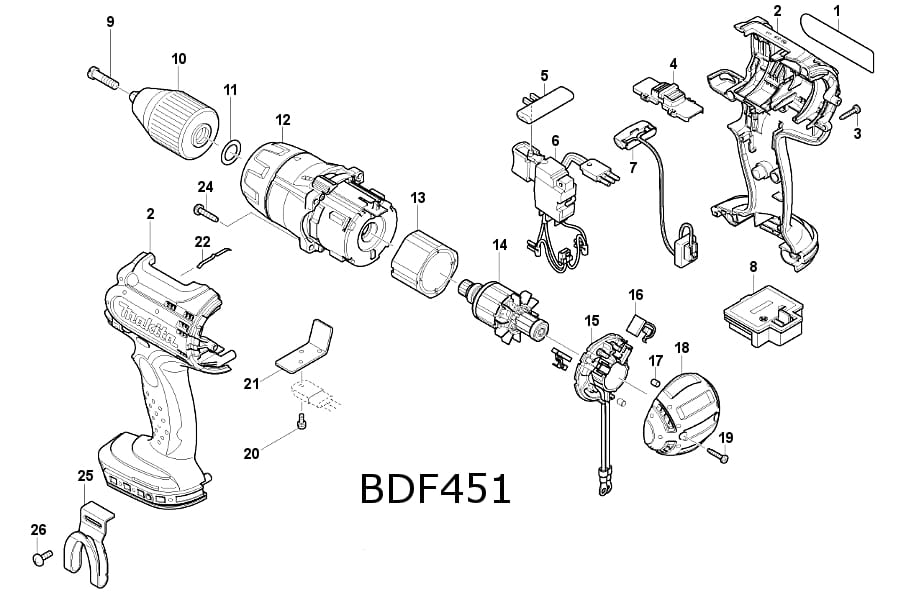 Korpus wkrętarki Makita BDF451 . BHP451